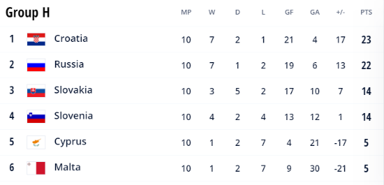2022년 월드컵 유럽 예선 순위 결과 본문