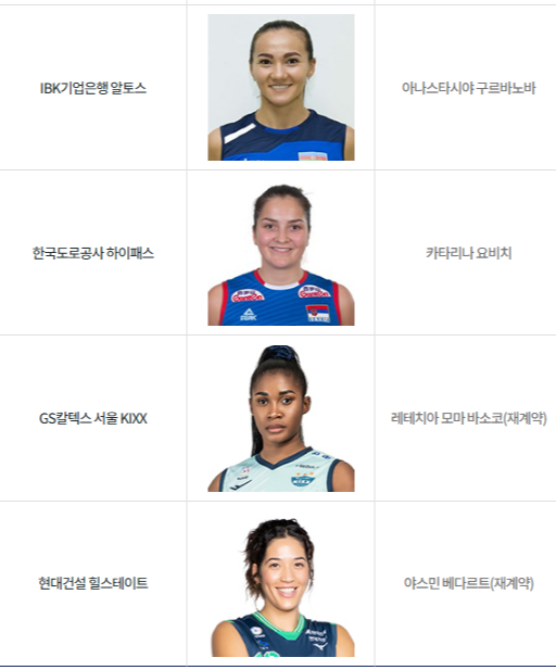 그리고 <GS칼텍스>와 <현대건설>은 지난 시즌 뛰었던 "모마" 선수와 "야스민" 선수와 각각 재계약을 선택했습니다.