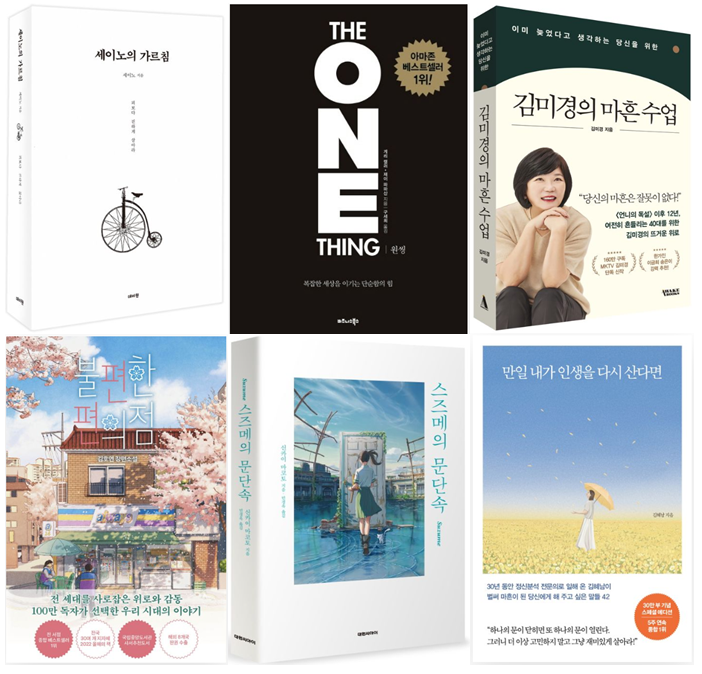 교보문고의 2023 상반기 베스트셀러 주요 동향을 살펴보면 "세이노"의 열풍과 함께 자기계발 도서들의 인기, 그리고 "일본 콘텐츠", "역주행", "캐릭터" 등으로 요약되었습니다.