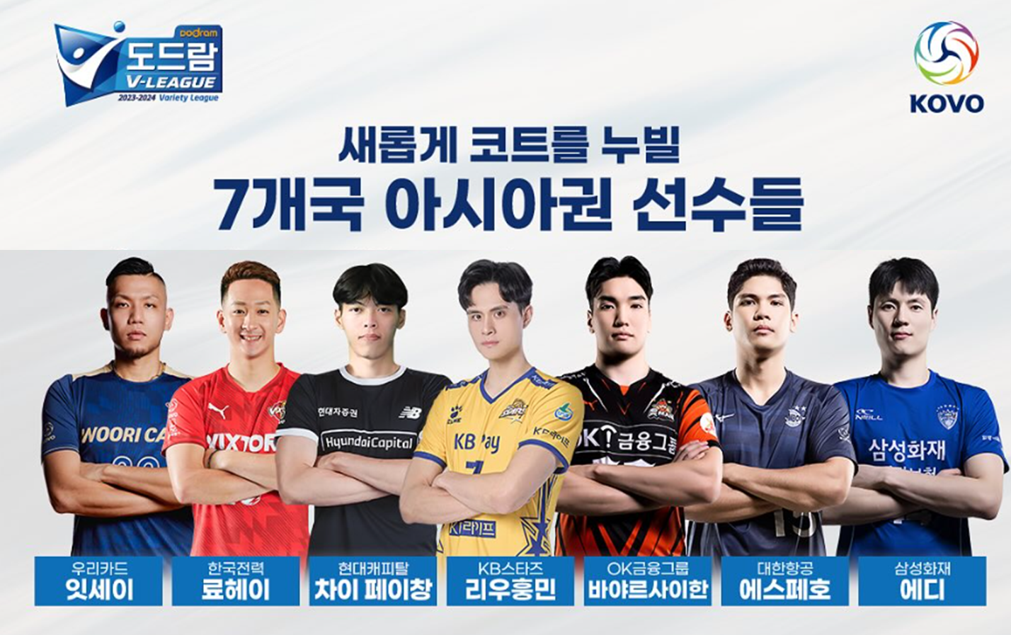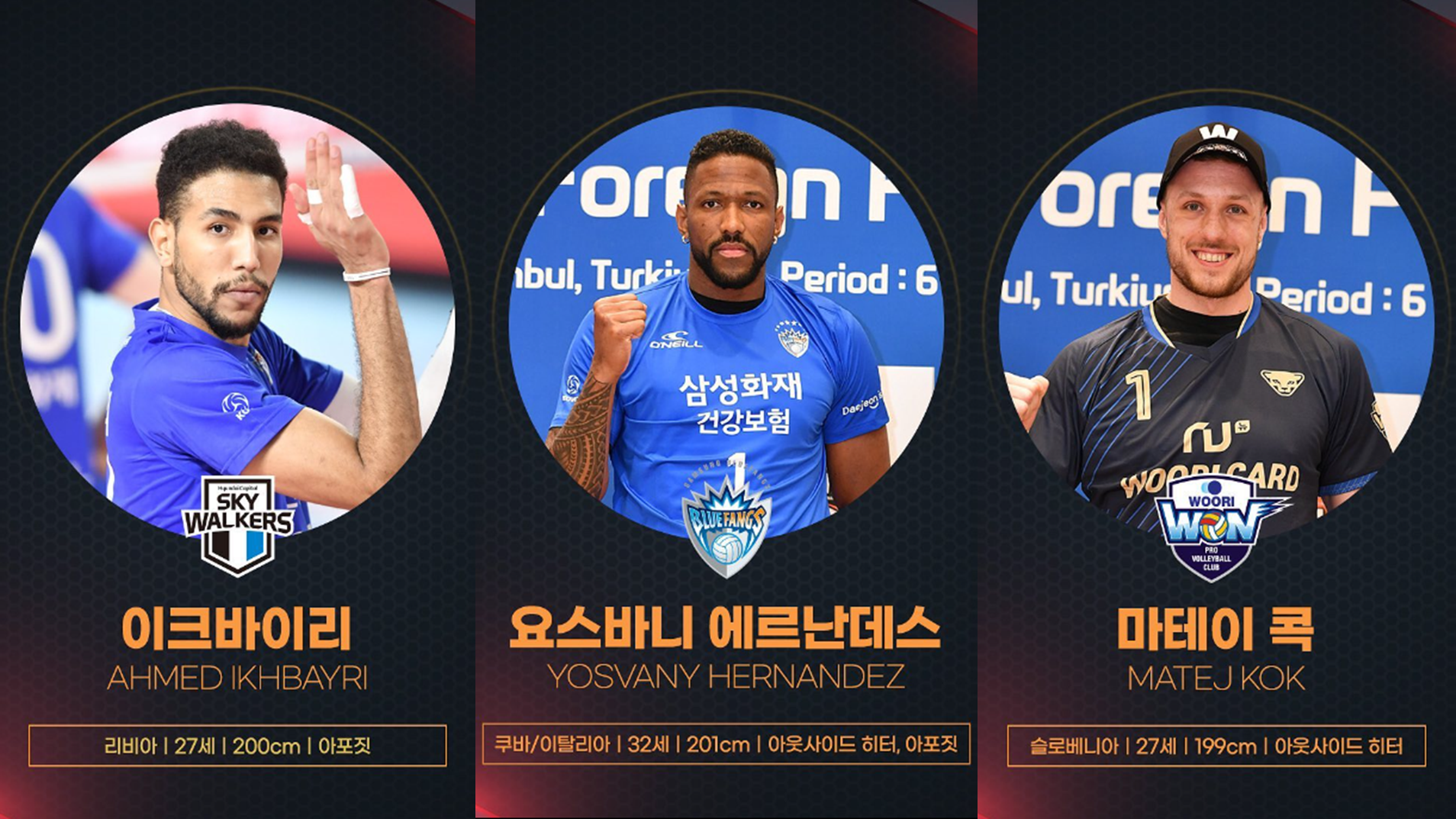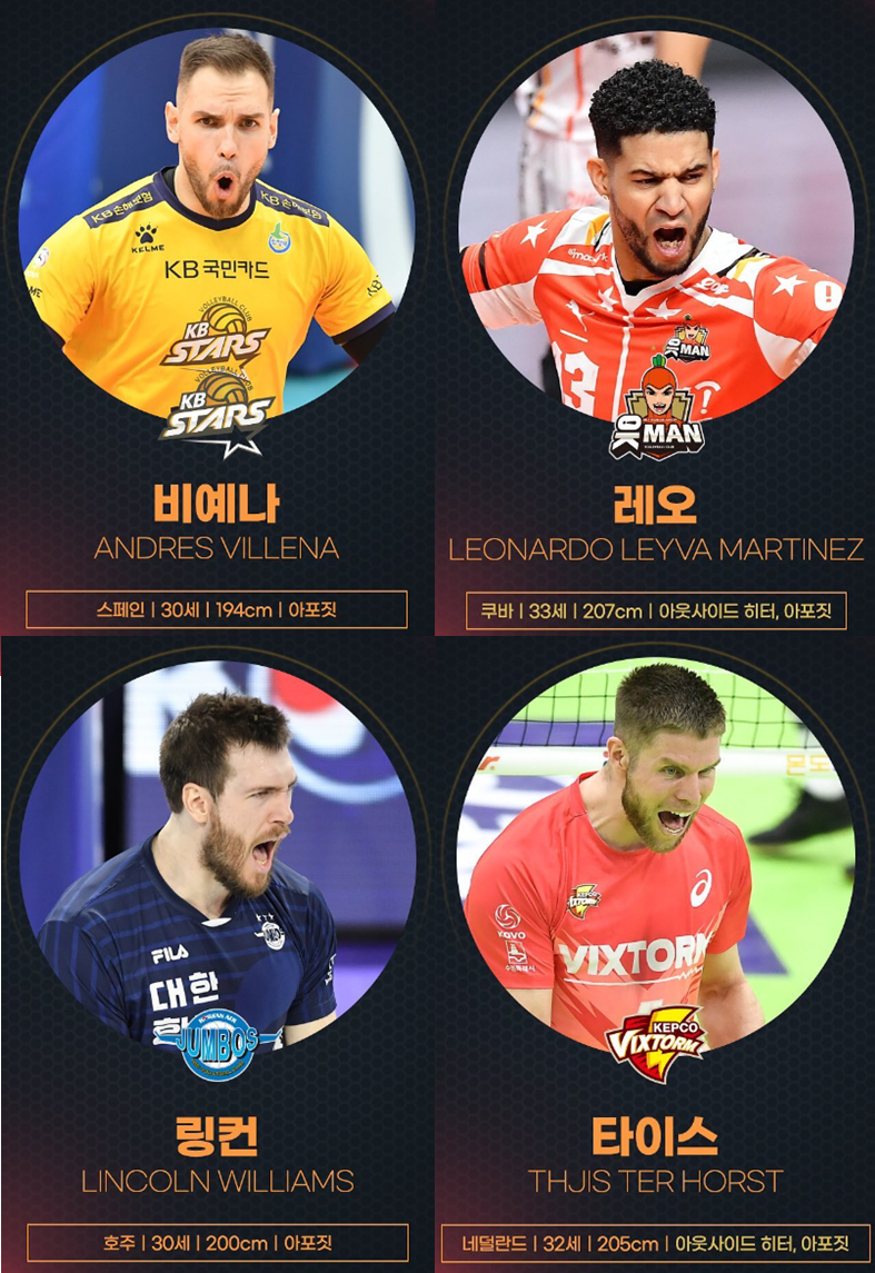 또한 다음은 OK금융그룹 "바야르사이한 밧수"(몽골, MB), 현대캐피탈 "차이페이창"(대만, MB), KB손해보험 "리우훙민"(대만, OH), 우리카드 "오타케 잇세이"(일본, OP) 선수를 영입했습니다.