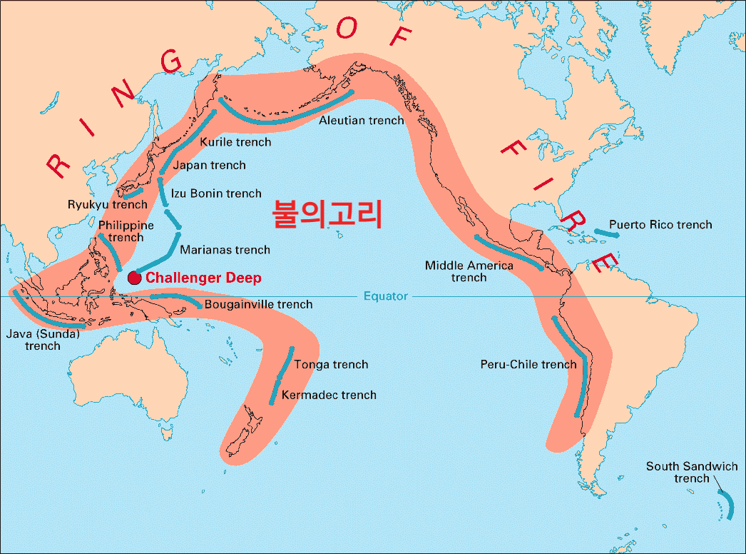 환태평양 조산대 불의고리 지진 지도 위치 본문