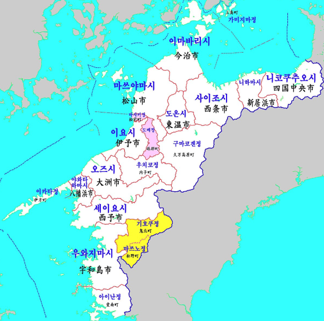 일본 에히메현 지도 위치와 여행 명소 본문