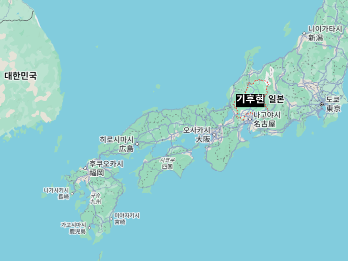 기후현(岐阜県, Gifu Prefecture)은 일본의 최상의 행정구역인 43개의 현(県)'중에 하나로, 일본 혼슈 주부 지방에 위치하고 있으며, 면적 약 10,621㎢, 인구 약 189만 명입니다.